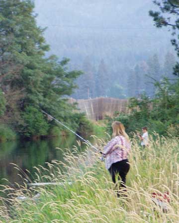 (4) Mother and child fishing. Spokane River (in